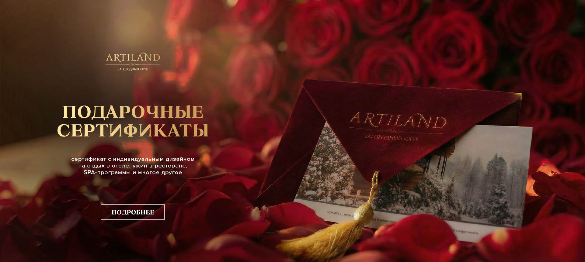 Сертификат с индивидуальным поздравлением и дизайном на отдых в отеле, ужин в ресторане, СПА-программы и многое другое